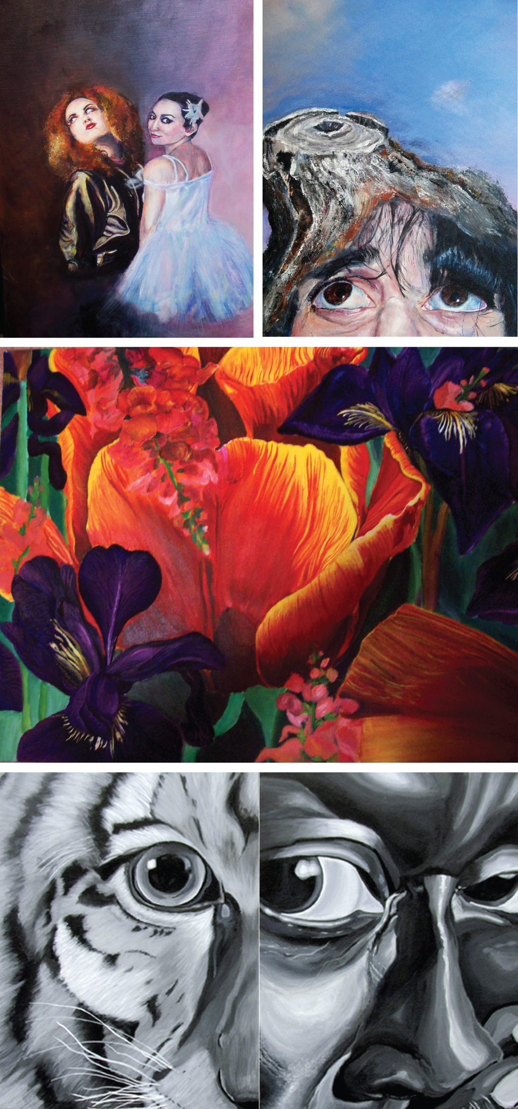 TigerMiles: acrylic on canvas, 14 x 16" ea.