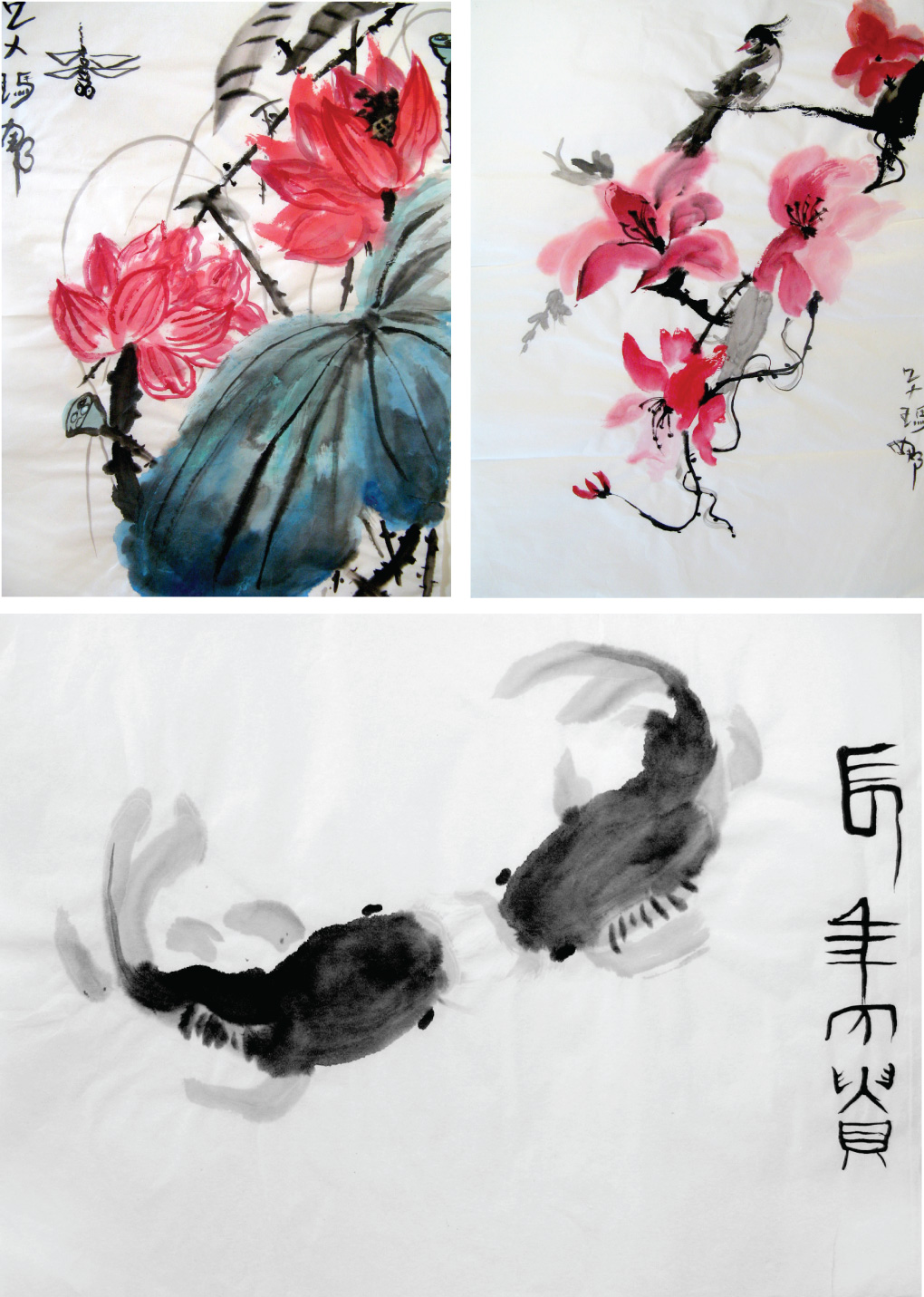 Colored Lotus: (left) Chinese ink on rice paper, 14 x 19"