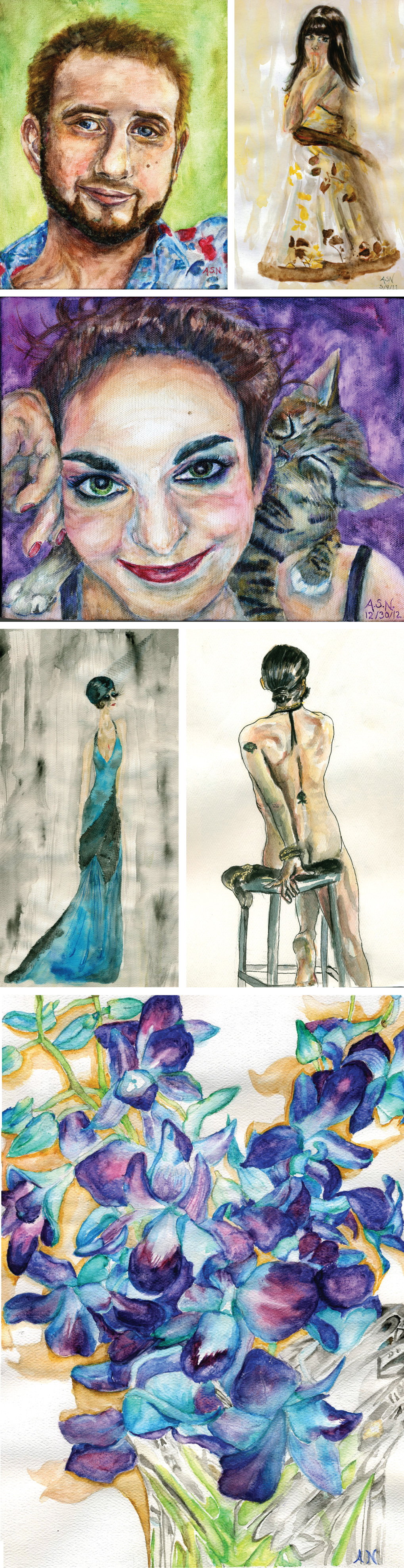 Owski: (left) watercolor on canvas, 8 x 10"