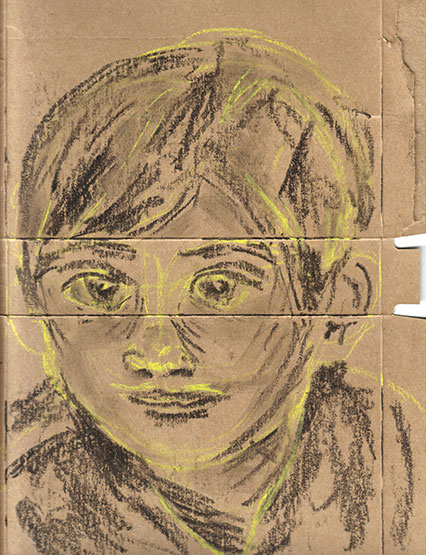 When I find myself in a nyc situation like that, I often start to observe the people around me and discretely sketch them. Anyone in my line of vision has the potential to become a character in my head with a vague back story. It’s fascinating to see a room full of strangers so disconnected from each other but very connected to their own technological devices. 99% of people around me had earbuds in to tune out the rest of the room and disengage from any potential conversation. (I probably would have done the same had I remembered to bring any music.) As I glanced at a girl in front of me attached to her headphones, I broke out a pencil and a shopping bag of leftovers from the evening’s dinner, and began to doodle. I got a bit carried away and later, when I had access, added some charcoal and ink for the fun of it. |