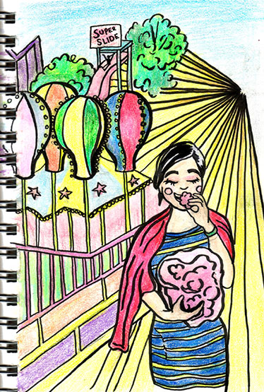 Once in a while, you need a day to play. Thanks to good friends and family and a conveniently located carnival practically in my backyard, I was able to do that today. It was nice to de-mopify for an afternoon on super slides, funnel cakes, fancy piña colada cups and Farris-wheels. Return to top.