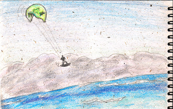 It was long overdue but I did it!!! I finally took a reeaalllll vacation. Thanks to my flores bonitas for the amazing groupon find for a week in the Dominican Republic. The combination of not working, sun, relaxation, adventure and all-inclusive food and drink was truly magical. Highlights included leaping off a waterfall, ziplining and horseback riding in one day, a lot of pool-side and beach lounging, failed snorkeling and kayak attempts, late night card games with friendly strangers and much much more. Of the incredible sites, one was particularly inspiring. I had never heard of kite/wind surfing prior to this trip but after seeing it, proves…humans can fly. As I sat on the beach, eating out of a coconut, I was mesmerized by the athletic warriors in the ocean gliding on and over the waves. They just soared through the sky gracefully, looping and twisting through the air then landed back on the water’s surface, skating towards the next wave to take flight again. I would love to have the physical strength to do something like that someday, even if only for a second. In the meantime, I will dream about it while doodling. To my friends who joined me, this glorious thing people refer to as a vacation (or holiday if you are British apparently), can we make this an annual thing? Pretty please?