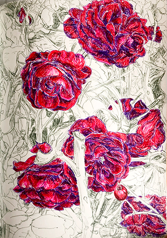 All that and more really made for a great, overdue and badly needed vacation. There were so many fun images to reference for this doodle but I had so much fun drawing sunflowers recently, decided to try my hand at roses next. Thanks to all who encouraged me to go and joined me on the west coast!