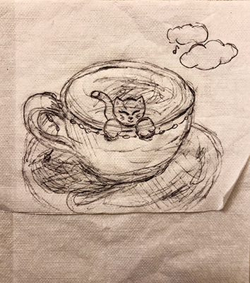 There’s nothing like a boujee lunch in a calm coffee shop to reset your work woes in the middle of the day. Some chai tea and overpriced but masterful avocado toast got me doodling on a napkin before returning to face my to-do list.
