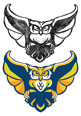 Oh right, I like when I get to do what I was hired to do. I had the pleasure of designing/illustrating a Middle School mascot for Democracy Prep at the Stewart Campus, located in San Antonio, Texas. While last year’s elementary school baby owl was a blast to make and a big hit, I received a request for an older, fiercer bird of prey. Here is the pencil sketch and the vector illustration that came from it. I really enjoyed this whole process and hope scholars and staff enjoy him on all future signs and swag to come!